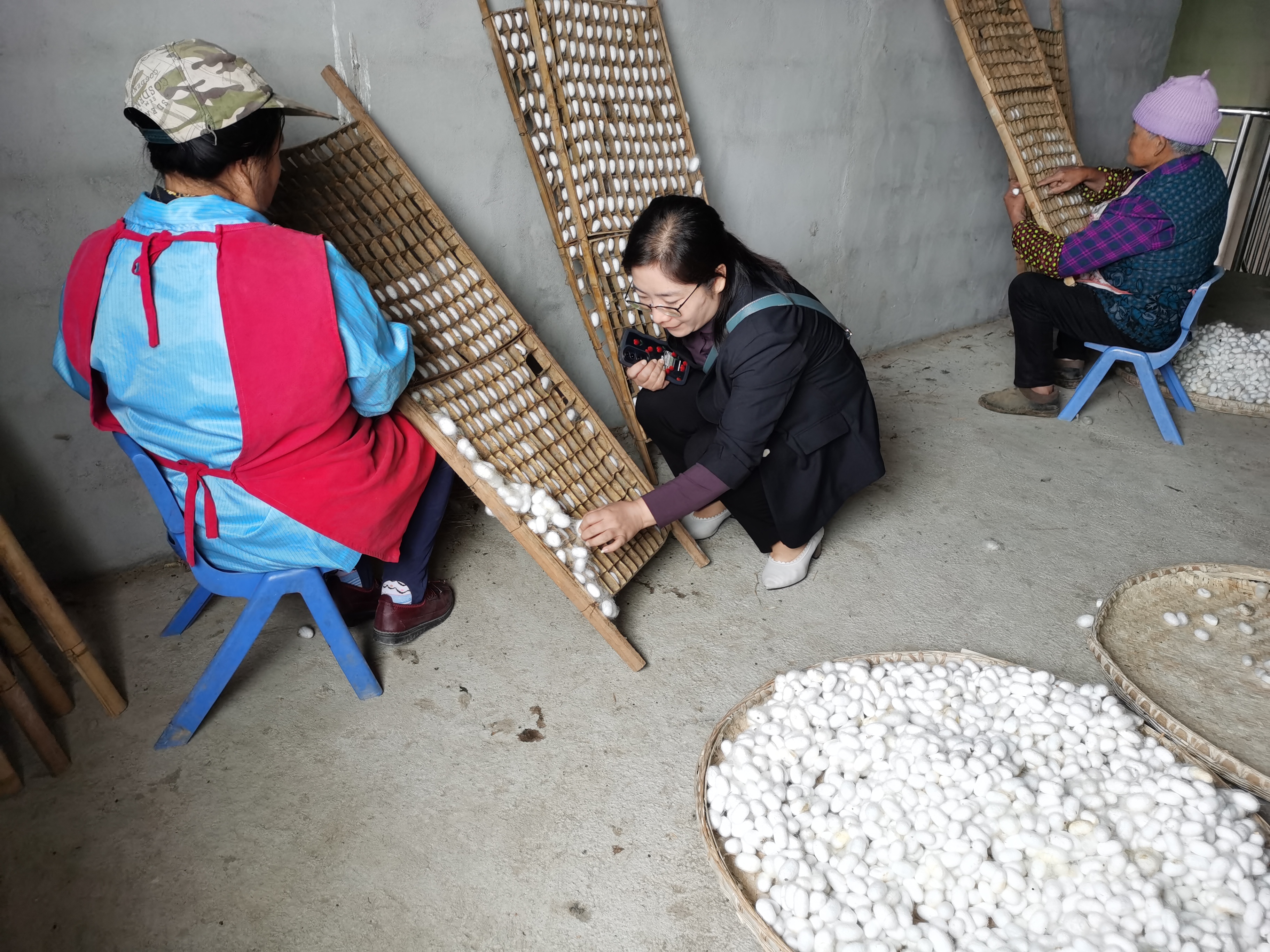 近日,巫溪县审计局在县林业局经济责任审计中,围绕财政涉农整合补助资金提质增效目标,通过实地查看农户养蚕现场,询问村民养殖、收益等情况,分析项目发展绩效,提出意见建议,助力产业健康发展。图为审计人员核实农户养蚕增收情况。(巫溪县审计局冷从燕)