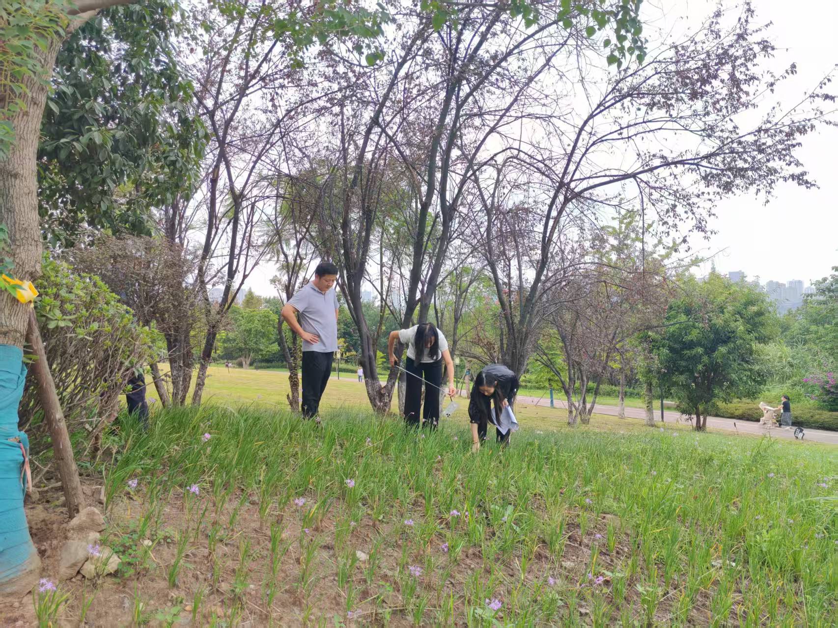 近日,巴南区审计局在主城区“两江四岸”治理提升专项审计调查中,聚焦“重建轻管”问题,通过现场清点、实地测量、台账核查等方式,对照设计方案,逐项核验绿化苗木种植成效与养护状况,确保“两江四岸”项目既“建得好”更“管得优”。图为检查现场。(巴南区审计局葛小平)